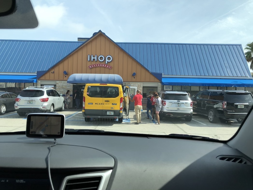 Deze ochtend stonden we vroeg op voor onze volgende bestemming, Clearwater Beach. We reden eerst naar een IHOP restaurant voor het ontbijt. Het was er druk maar we konden direct aan tafel. American pancakes en toast met ei en bacon bestelde we. De pancakes en toast waren erg lekker maar het was een flinke hap voor ons.