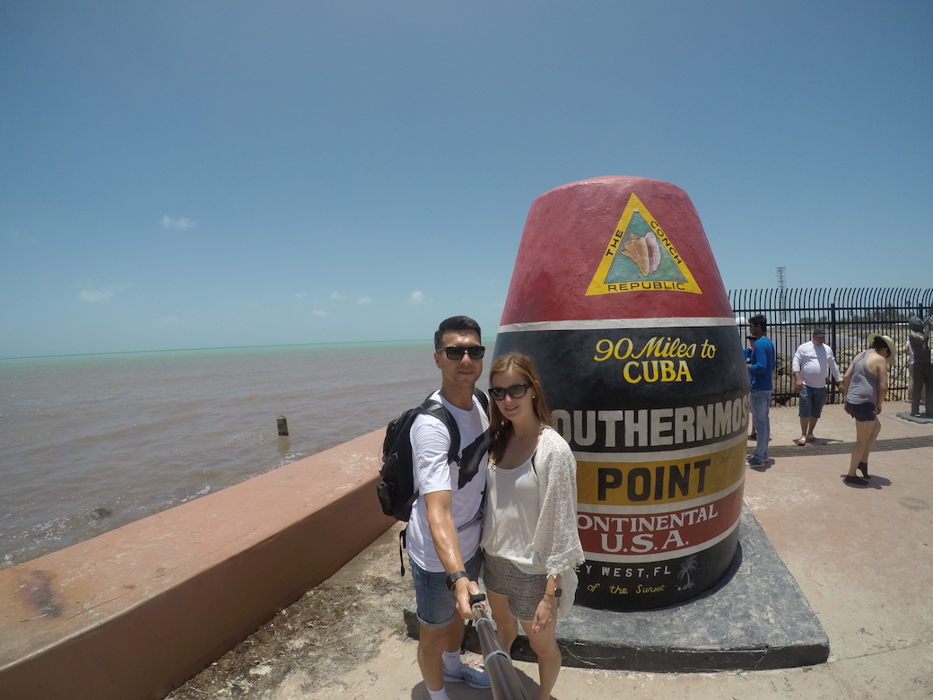 Aangezien we nog voldoende parkeertijd hadden liepen we even over de Duval Street. Een straatje met veel (toeristische) winkeltjes, boetiekjes, restaurantjes en barrertjes. Een uur later stapten we in de auto en reden naar Southernmost Point (van Amerika). Het punt staat niet helemaal op het zuidelijkste punt maar desondanks is het wel een ware trekpleister. Er stond een rij toen wij aankwamen. Het duurde ongeveer een half uur (plus heel veel zweet, het was erg warm) toen wij eindelijk bij het punt stonden en foto’s konden maken.