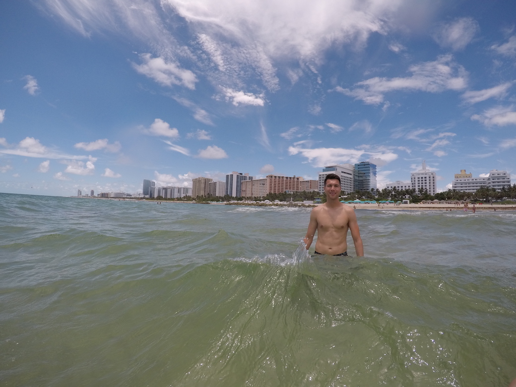 Het was erg warm geworden. We zochten snel de verkoeling op in de zee. Miami Beach heeft iets last van het zeewier probleem. Toen we de zee in liepen zagen we vooral in het begin zeewier en bruin water. Verder in de zee was het gelukkig niet en was het water mooi helder. Het strand loopt rustig af in de zee, een lang stuk is ondiep. De temperatuur van het zeewater was heerlijk, we hadden lekker gezwommen. De middag kwamen we ontspannen door.