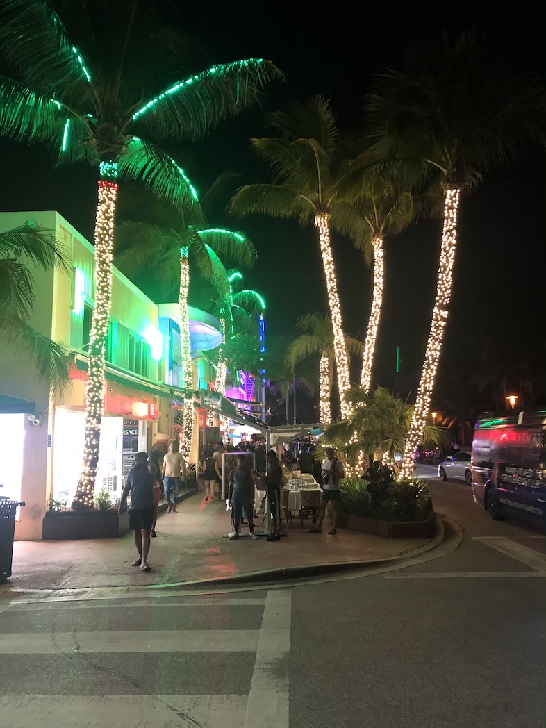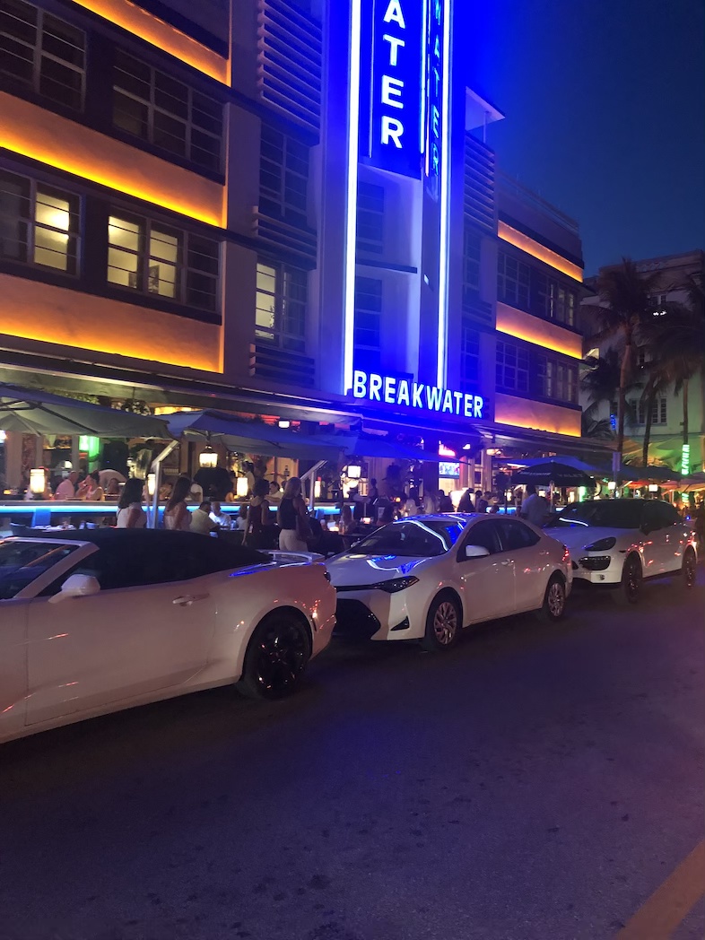 Na het avondeten gingen we naar één van de meest bekende straten van Miami Beach, Ocean Drive. Een bruisende straat, met name restaurants en clubs. Het is hier zien en gezien worden. Op sommige plekken lijkt het op een kermisattractie met al die lichten en geluiden. Propers zijn er in overvloed. Op Ocean Drive hangt er een leuke sfeer. Voor iedereen is er wel wat te vinden. Mooie auto’s rijden af en aan. Bij Havana 1957, van Hotel Breakwater, gingen we op het verhoogde terras zitten. Een perfecte plek aan de Ocean Drive. Van de cocktailkaart kozen we een Cuba Libre en Mojito. Superlekker.