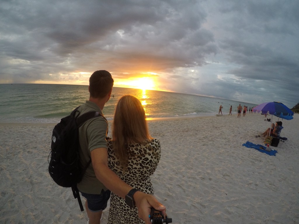 De timing was perfect. De zonsondergang konden wij op het mooie witte strand zien. Zonder dat dit onze bedoeling was. Wij zagen al veel mensen hiernaar toe lopen, dat was daarvoor dus.