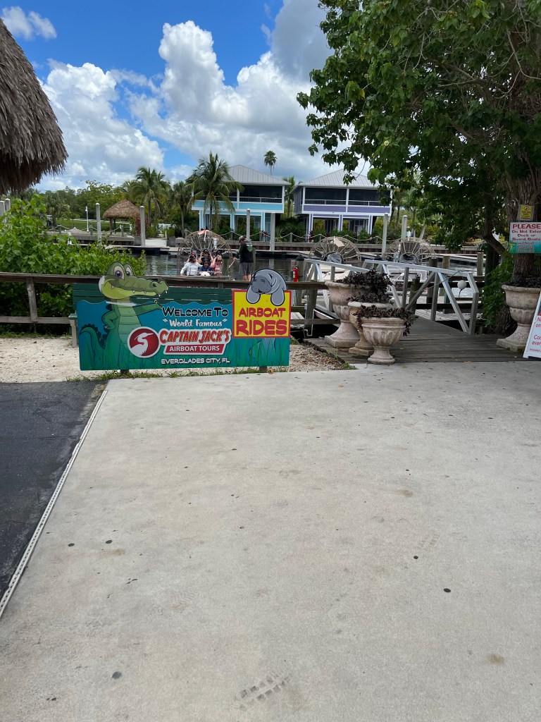 Wij namen nog een koffie to go mee voor onderweg. Ongeveer na een uur rijden kwamen wij aan in Everglades City. Bij Captian Jack’s Airboat Tours gingen wij kijken of het nog mogelijk was om een tour te doen. En gelukkig kon dat. Even 20 minuten gewacht tot wij aan de beurt waren. Met 5 personen plus de bestuurder zaten wij op de boot.