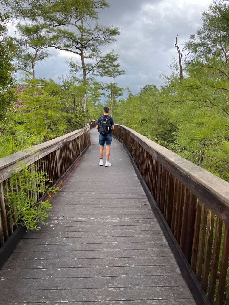 In de auto deden wij eerst droge kleding aan. Dat voelde beter aan om verder te gaan rijden. Bij Kirby S. Road Storter Park was de volgende stop. Daar liepen wij toen het droger was over de boardwalk. Er was verder niemand hier, lekker rustig. Na een paar honderd meter vonden wij het prima en liepen terug, het is maar één route dus dezelfde weg weer terug. Dit is een mooie boardwalk, loopt ver door. Het is slim om in de Everglades muggenspray zoals Deet te gebruiken, heel veel muggen hier.