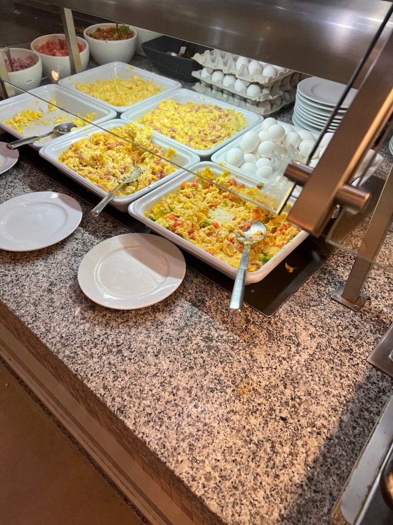 Bij het ontbijtbuffet was het wederom al druk. Altijd spitsuur als wij gaan ontbijten hebben wij het idee. Op vakantie maken wij daar ons gelukkig niet druk over, daarvoor zijn wij hier niet haha.